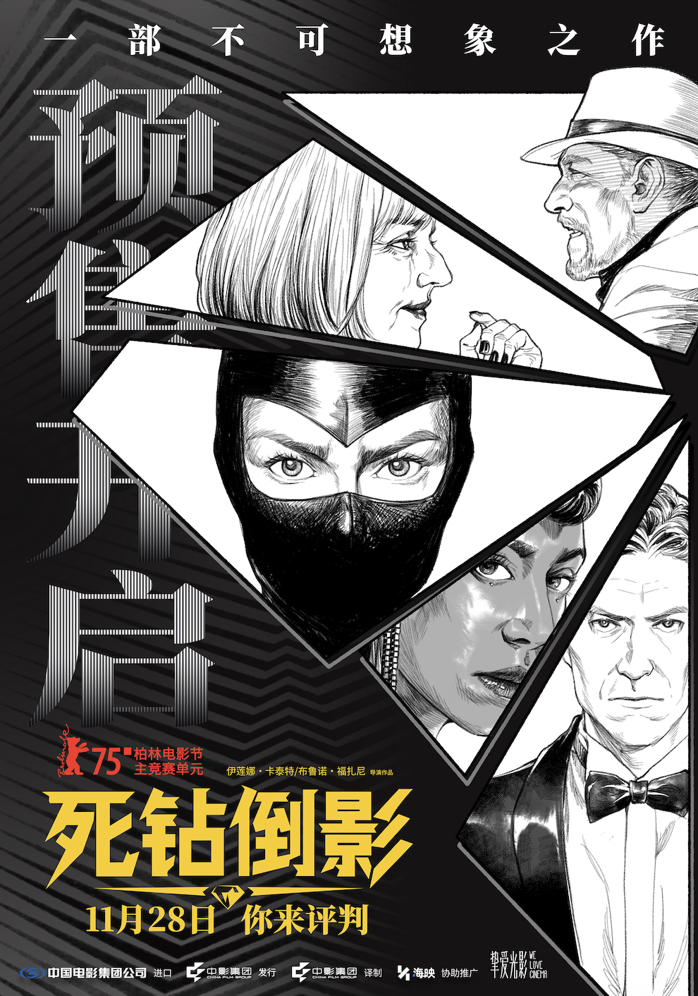 第75届柏林国际电影节主竞赛单元影片《死钻倒影》今日官宣预售开启,发布“虚幻交织”主题预告及“钻石棱镜”主题海报。影片定于11月28日正式上映,并将在本周末于14城开启超前限定点映。该片由法国导演组合伊莲娜·卡泰特与布鲁诺·福扎尼执导,此前在柏林及本月举行的金鸡国际电影节展映中,均因口碑争议不断而成为话题焦点,被影迷奉为“年度神片”,其争议性本身正是影片魅力所在——它主动放弃安全的叙事逻辑,转而追求极致的感官刺激,彰显了导演纯粹的作者风格。